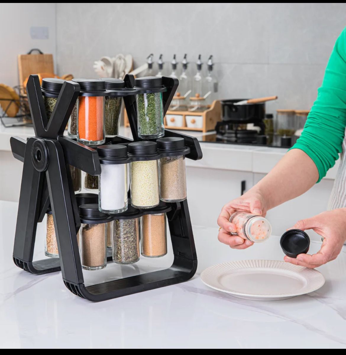 Condimentero Carrusel Giratorio – Orden y Acceso Rápido en Tu Cocina Este organizador giratorio de especias permite mantener tus condimentos visibles, ordenados y siempre al alcance. Su diseño moderno tipo carrusel optimiza el espacio y ofrece un acceso cómodo a cada frasco.
